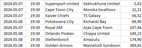 Több perspektíva alapján rangsorolva vannak a mérkőzések döntetlen eredményre való esély szempontjából. A legkisebb pontszámú mérkőzésnek van a legnagyobb esélye arra, hogy a végeredménye döntetlen legyen.