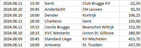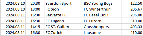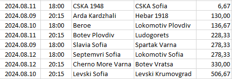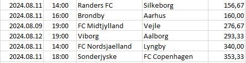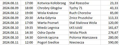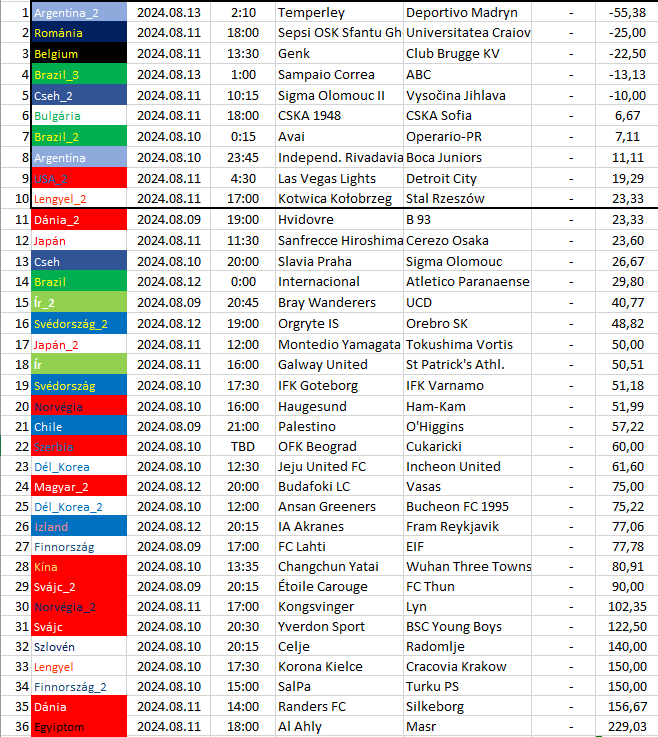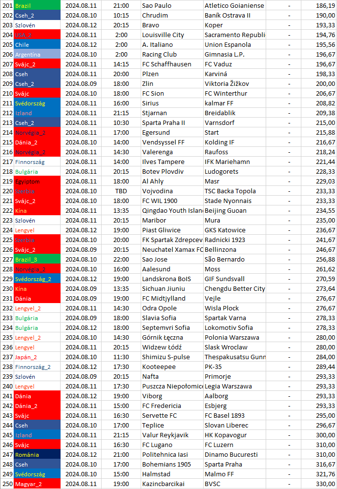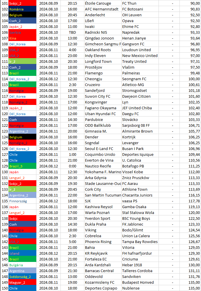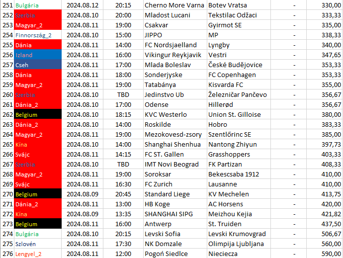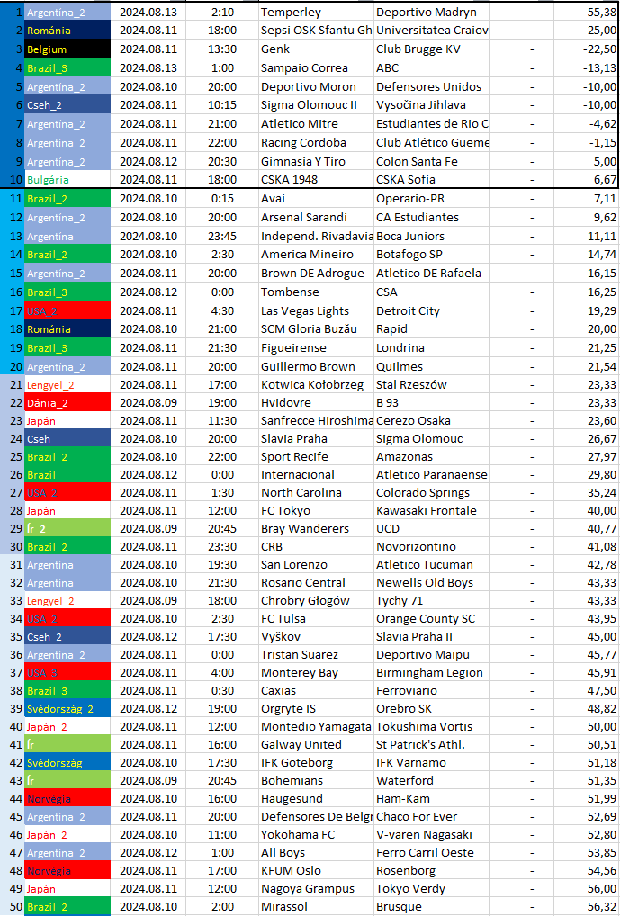 Itt csak az egy bajnokságra eső, a legnagyobb döntetlen esélyű mérkőzések vannak felsorolva és sorrendbe rendezve.