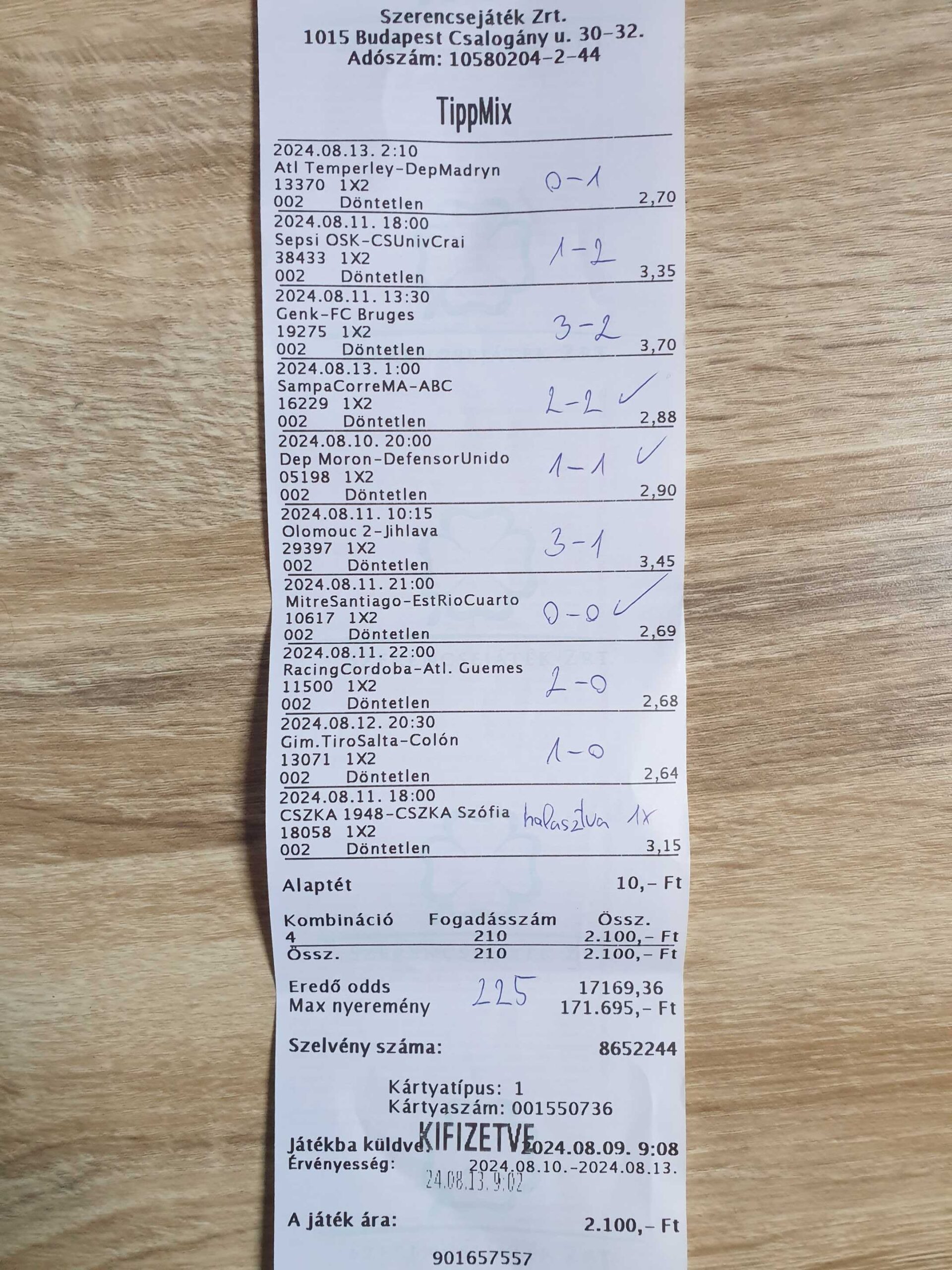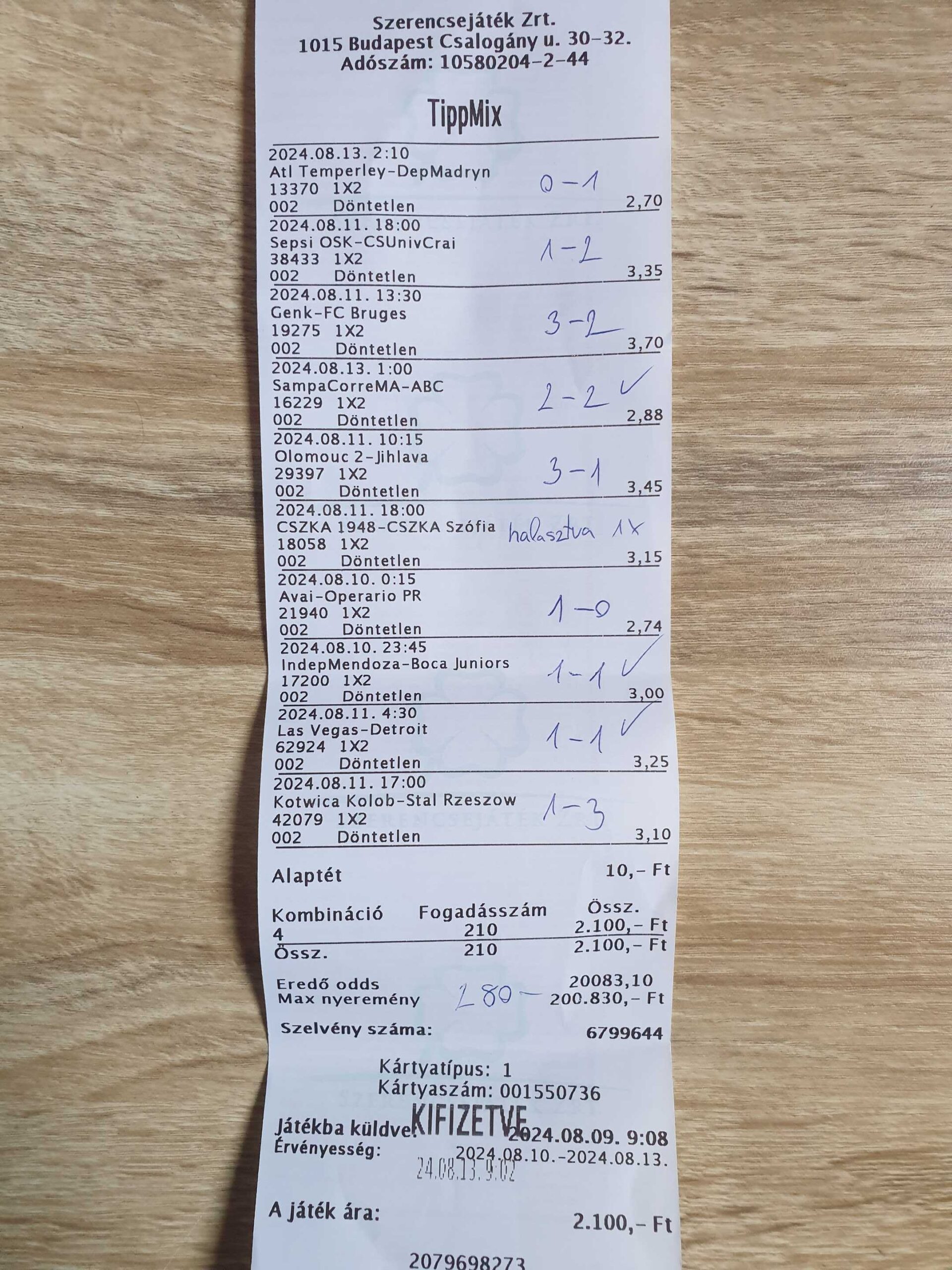 Bajnokságonként 1 mérkőzés