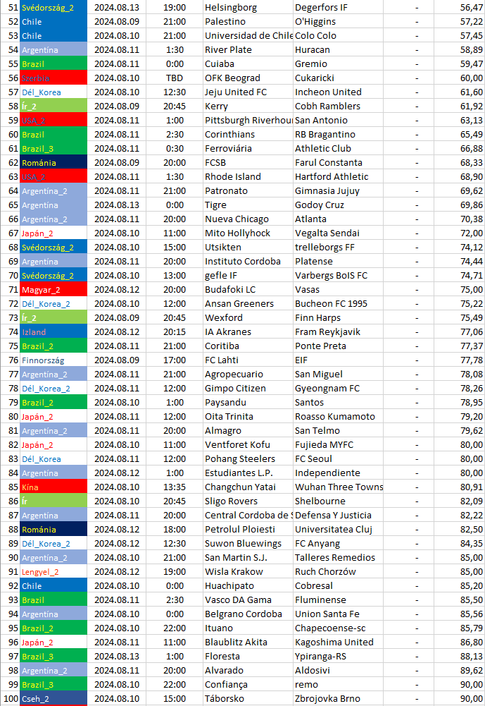 Ebben a táblázatban az összes elemzett ország mégkőzései vannak sorrendben a pontszámaik alapján.