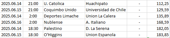 | 157 | Chile - Primera División | 2025.06.14 | 18:30 | Palestino | D. La Serena | 182,05 |