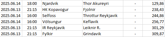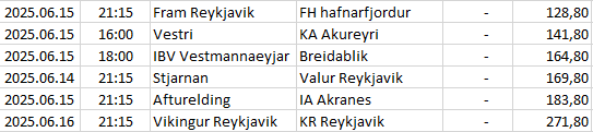| 127 | Iceland - Úrvalsdeild | 2025.06.15 | 16:00 | Vestri | KA Akureyri | 141,80 |