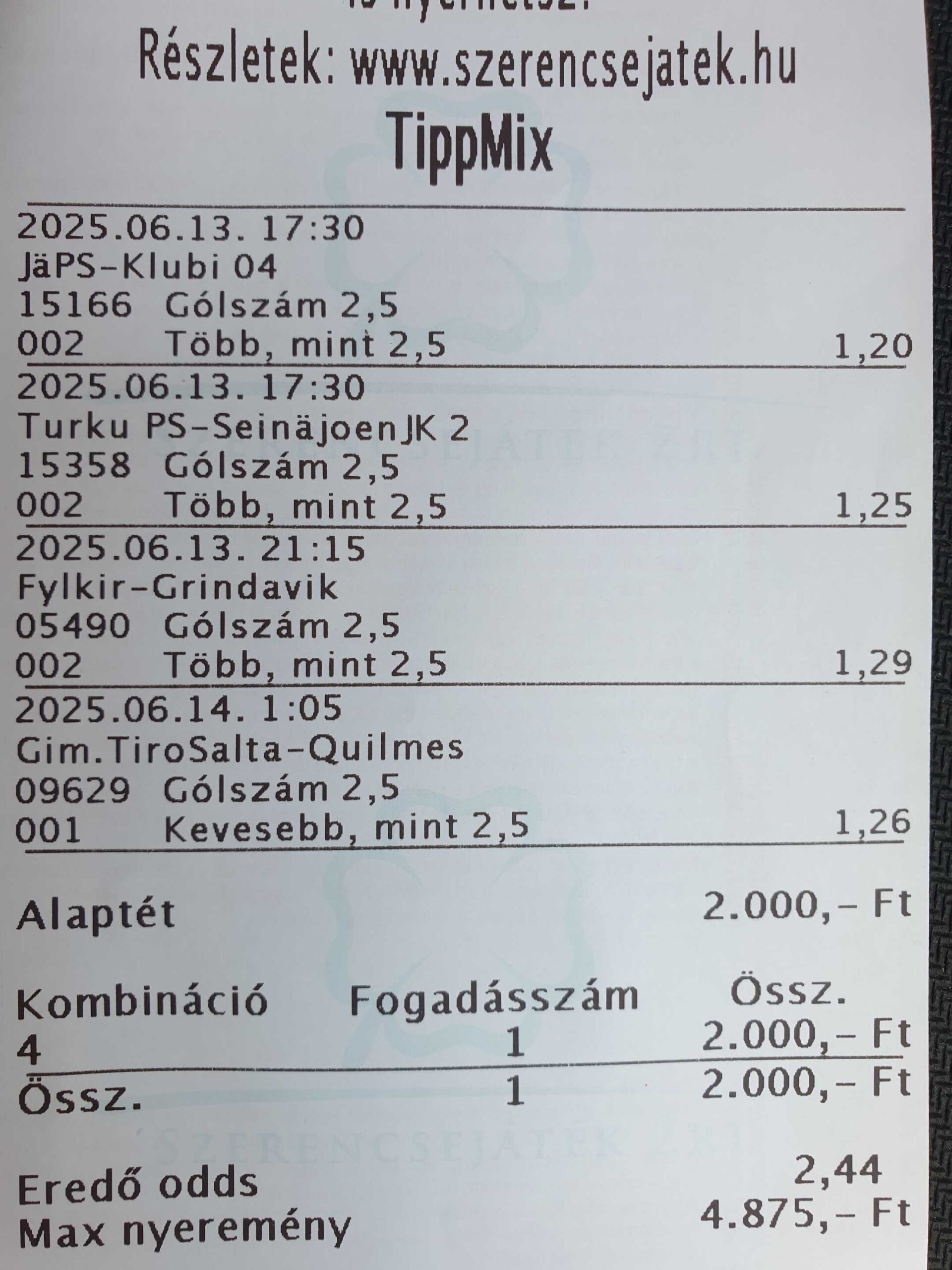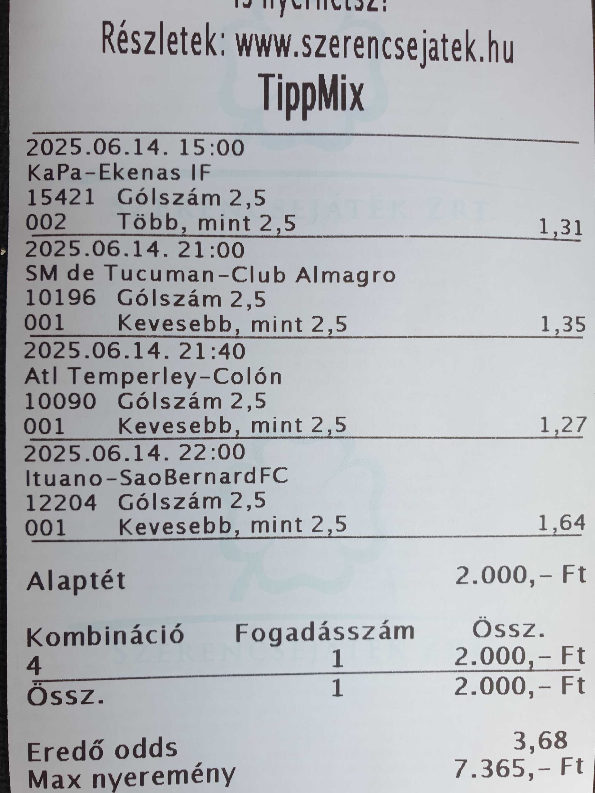 | 19 | Argentina - Primera Nacional | 2025.06.14 | 21:40 | Temperley | Colon Santa Fe | 39,66 |