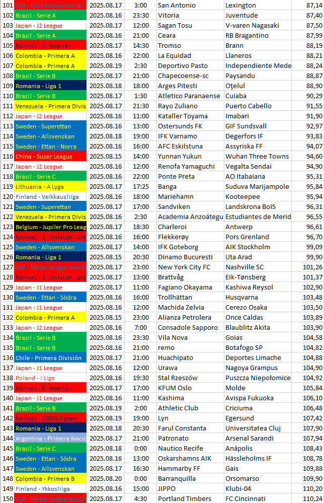 | 86 | Peru - Primera División | 2025.08.16 | 22:15 | UTC | Juan Pablo II College | 77,71 |