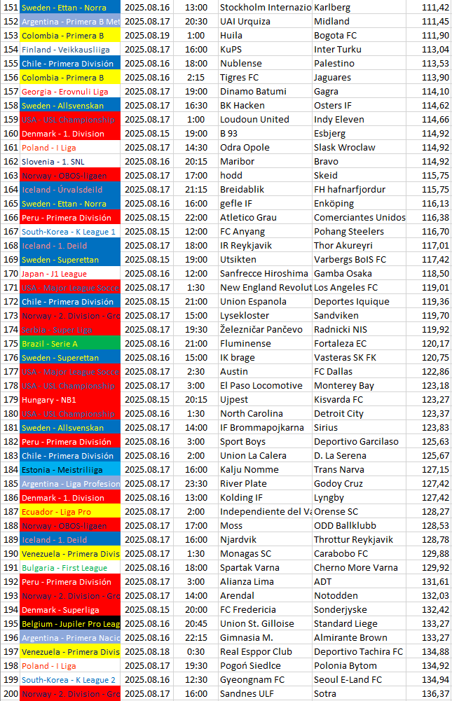 | 279 | Denmark - Superliga | 2025.08.17 | 14:00 | Vejle | FC Midtjylland | 197,42 |