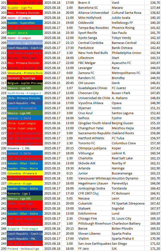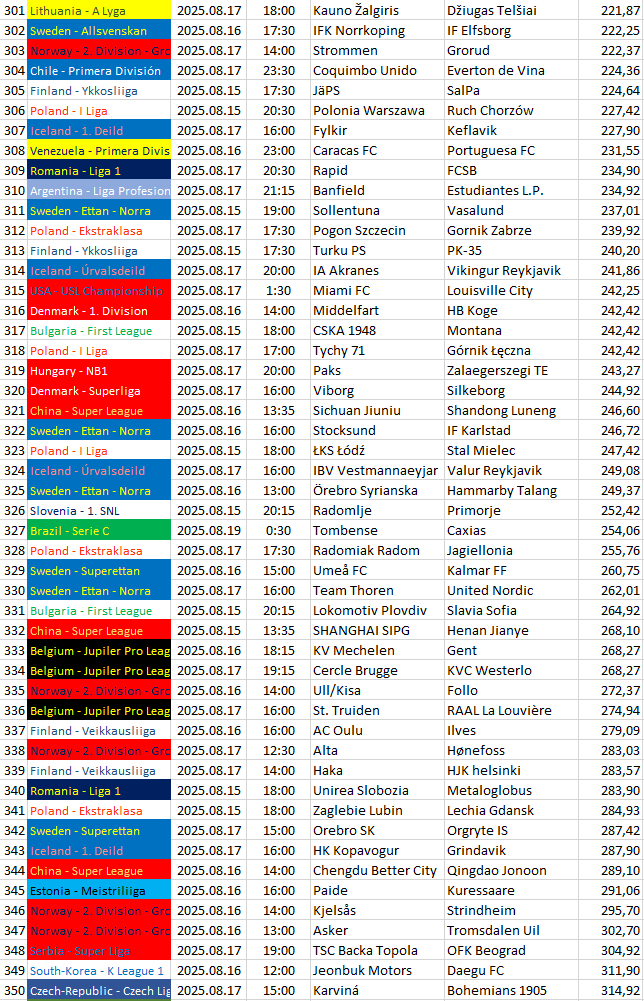 | 302 | Sweden - Allsvenskan | 2025.08.16 | 17:30 | IFK Norrkoping | IF Elfsborg | 222,25 |