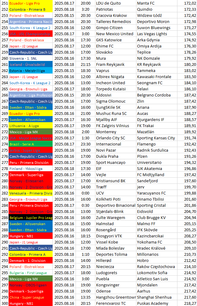 | 298 | Denmark - Superliga | 2025.08.18 | 19:00 | Odense | Aarhus | 217,42 |