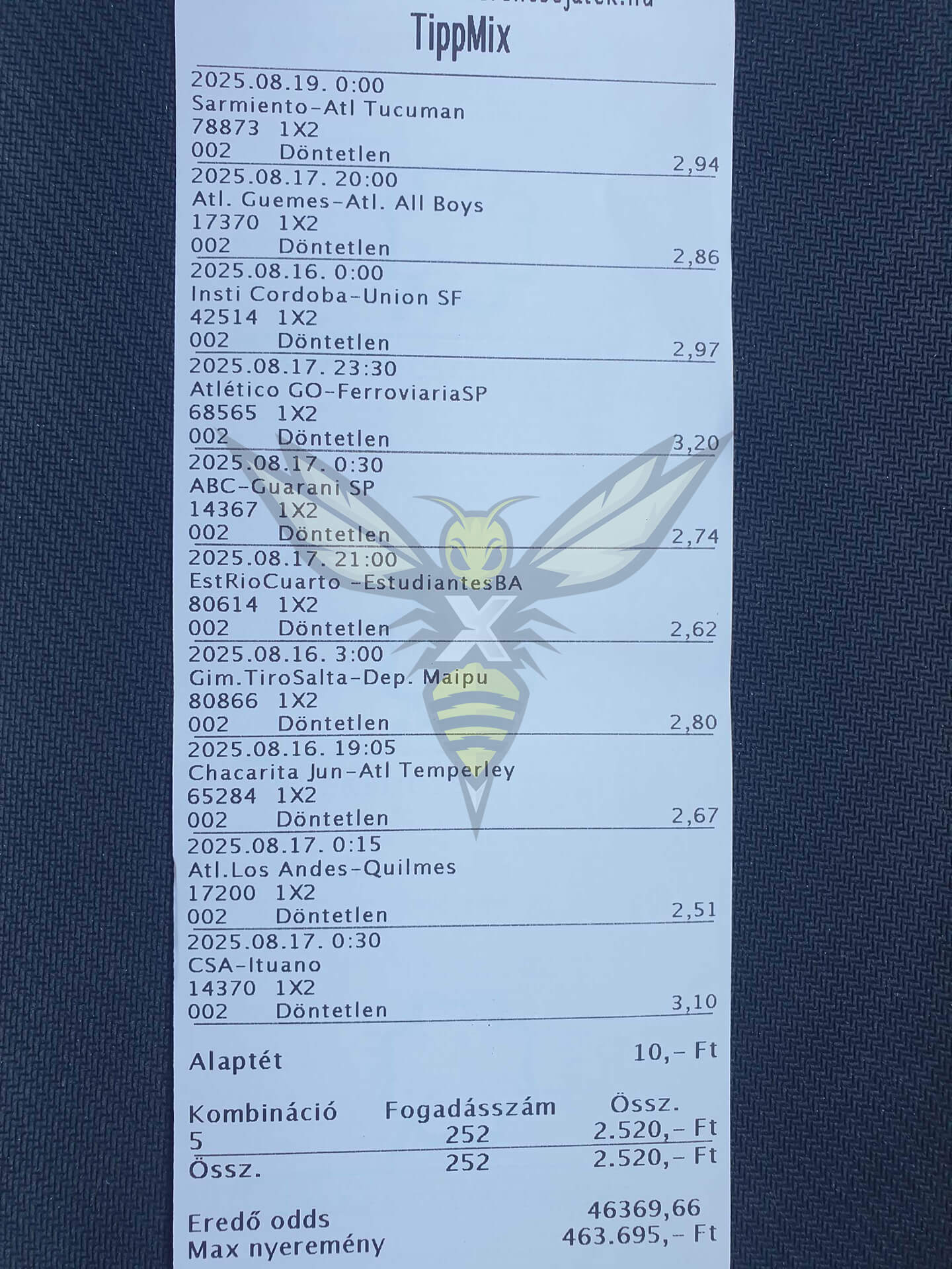 | 45 | Argentina - Primera Nacional | 2025.08.17 | 22:10 | San Martin Tucuman | Alvarado | 47,90 |