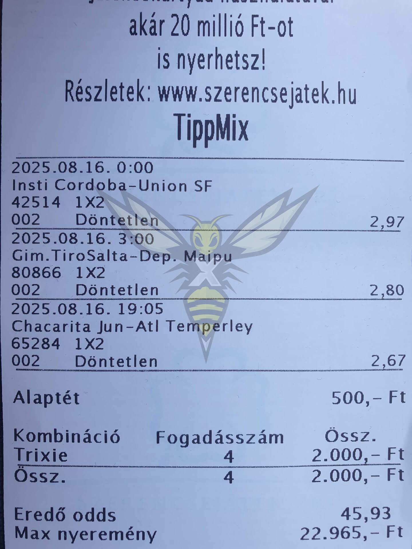 | 33 | Argentina - Primera Nacional | 2025.08.16 | 20:00 | Tristan Suarez | Deportivo Madryn | 37,94 |