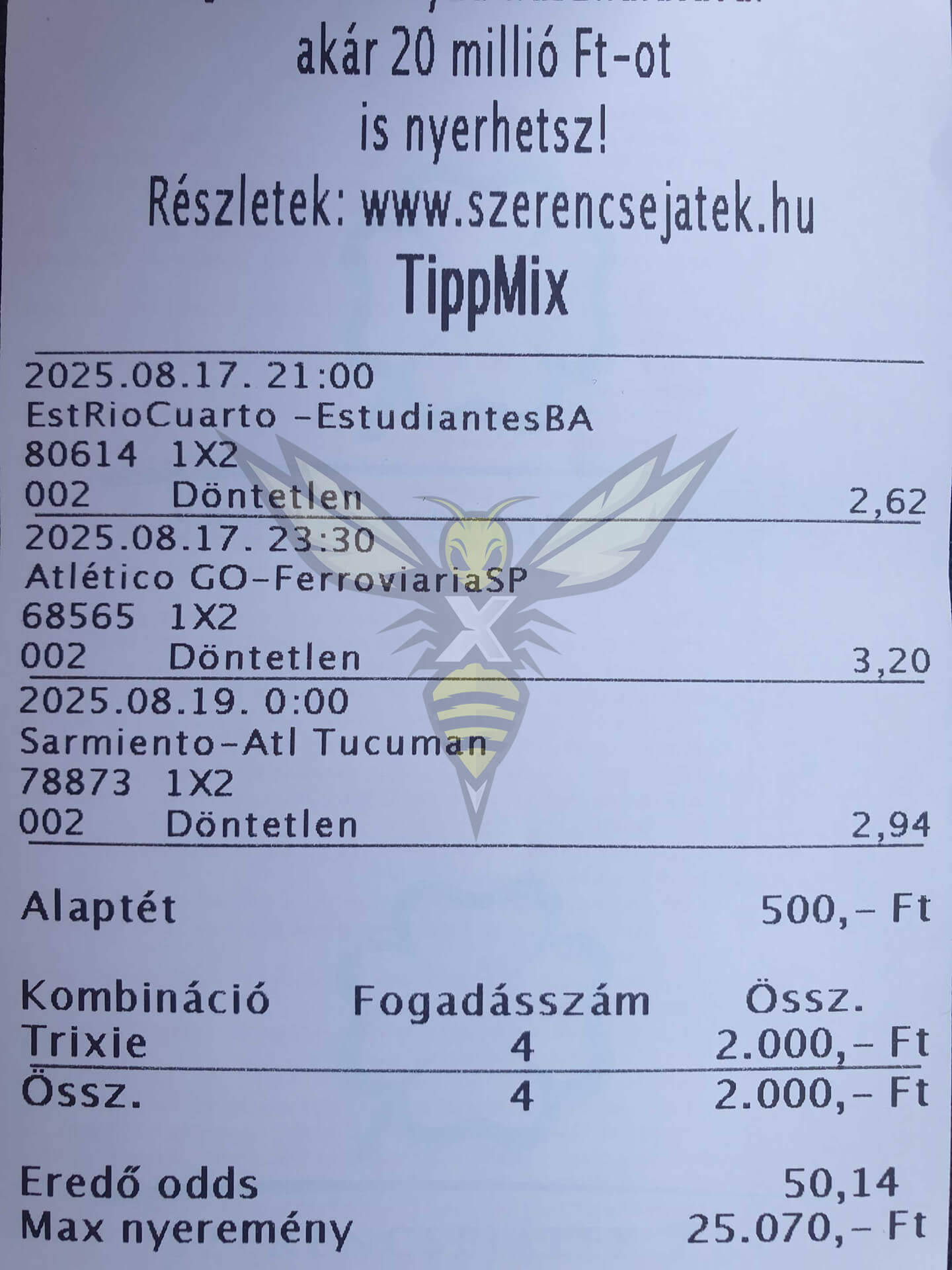 | 1 | Argentina - Liga Profesional | 2025.08.19 | 0:00 | Sarmiento Junin | Atletico Tucuman | -42,58 |